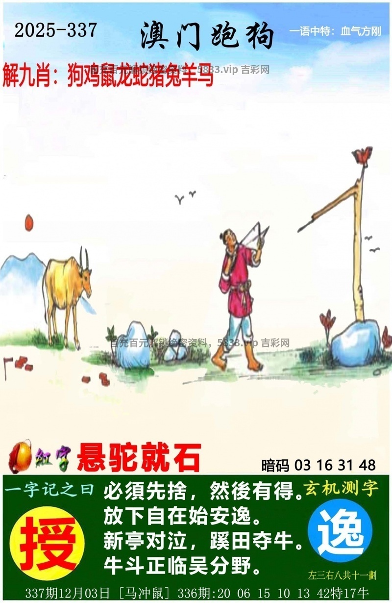 | 339期吉凶二肖『凶丑+马兔』开:马48准 |